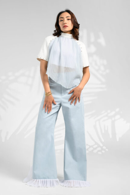 With their unique blend of comfort, edgy details, and endless styling possibilities, the organza studded trousers are a must-have addition to your summer wardrobe. So, embrace your inner fashion rebel and conquer the warm weather in style.